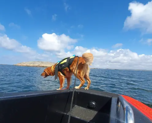 På bilderna ser du Rörös sjöräddninghundar Buza (Malin Svensson) och Freya (Maud Gustavsson).